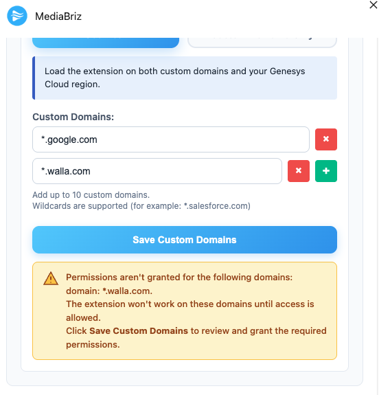 If a customer removes a configured domain, the application will display a warning message in the extension details view indicating that the domain was removed.