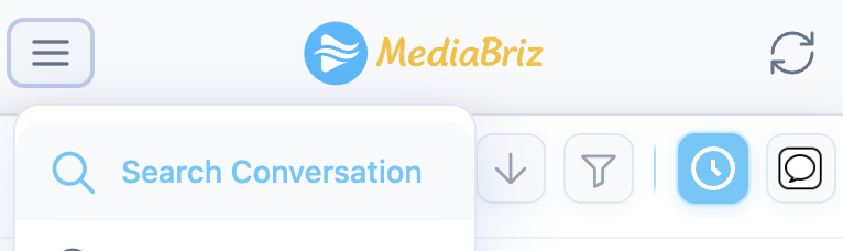To search for a conversation, tap the hamburger icon in the top-left corner of the main screen (Gallery view) and select Search Conversation from the menu.