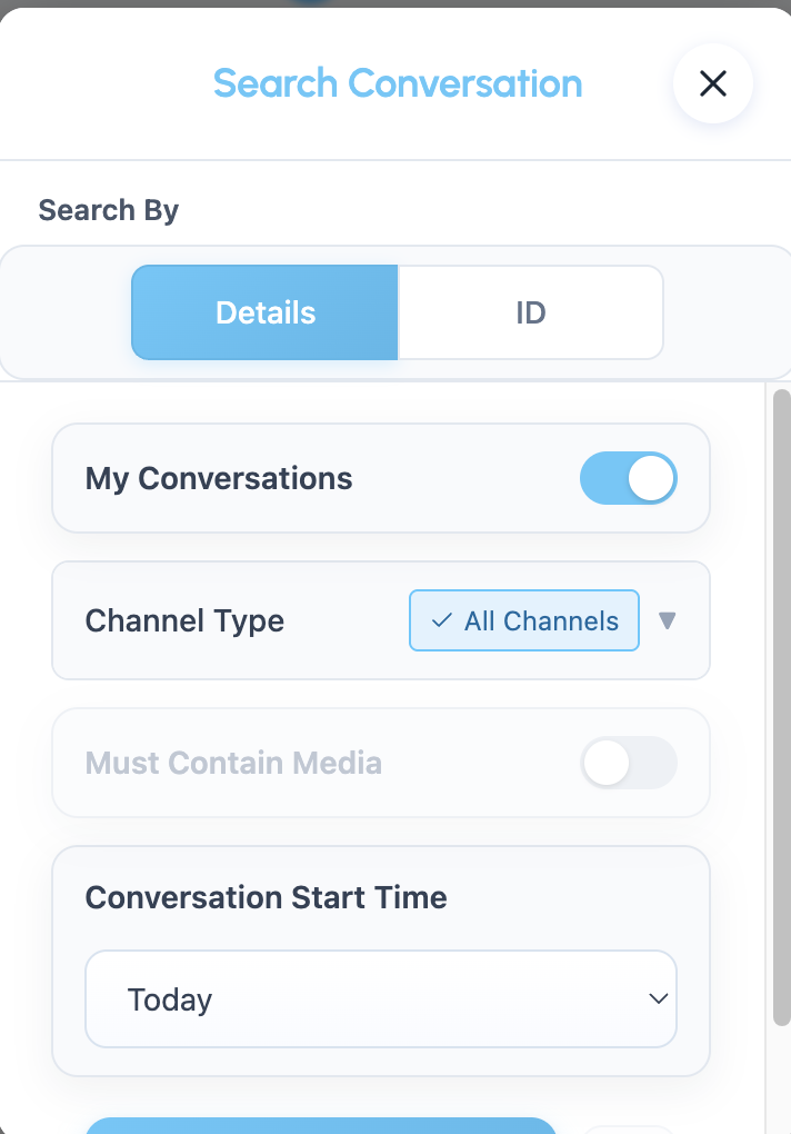 • Conversation Start Time – filter results by date or date range