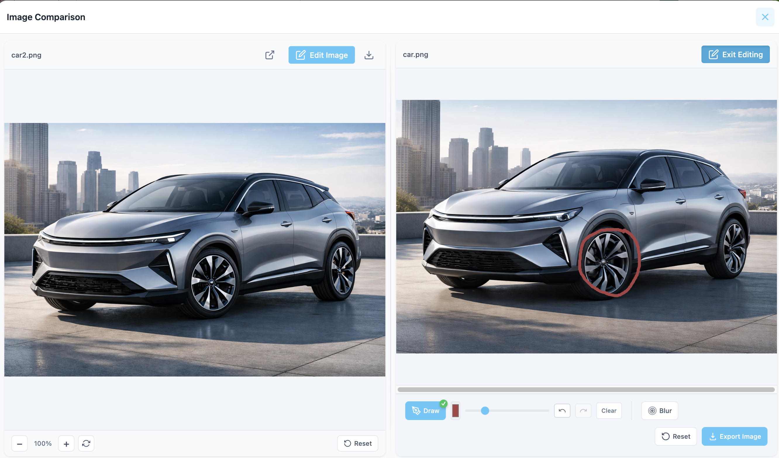 *Edits are not saved in the application, but you can download the edited image locally.