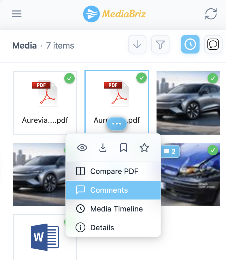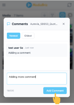 Comments help teams collaborate by allowing users to add notes, clarifications or important details related to the media item.